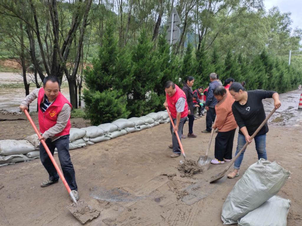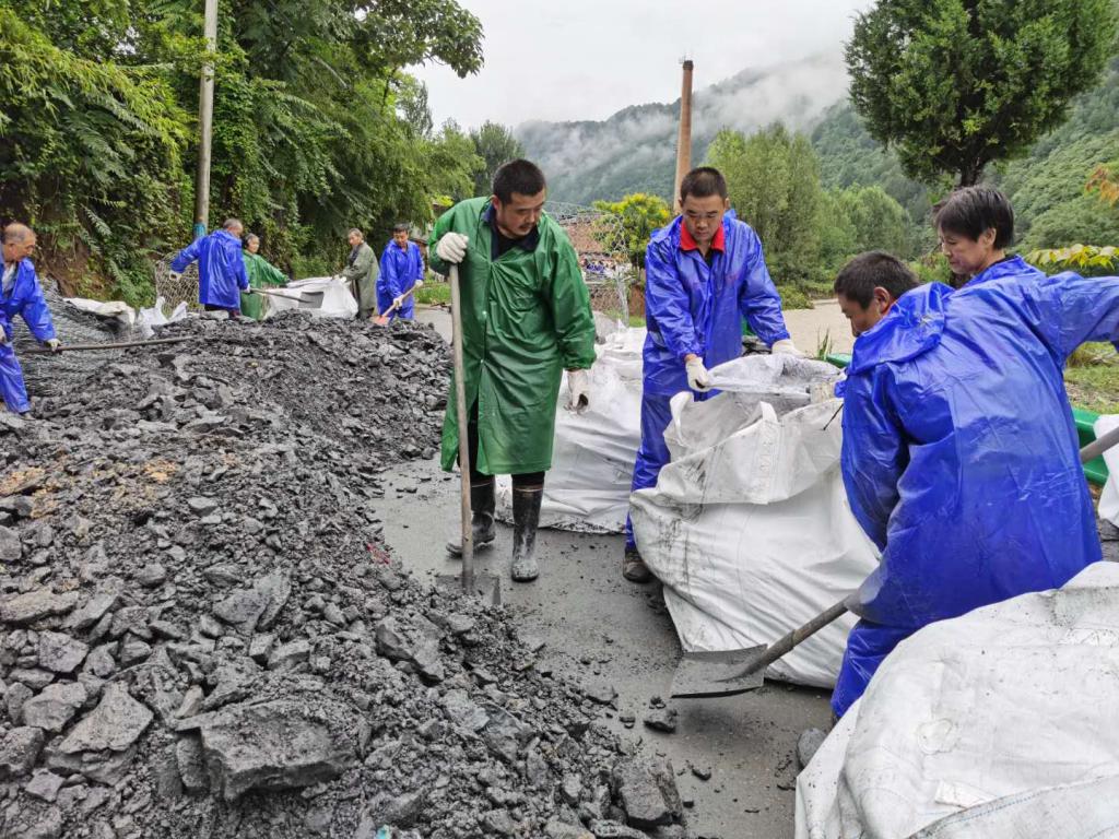 连日降雨使留凤关至三岔道路中断,留凤关镇纪委干部积极抢修留三路。