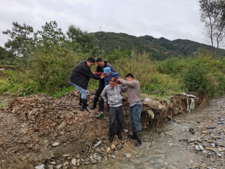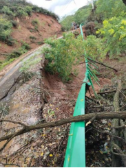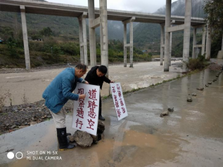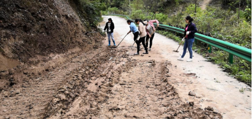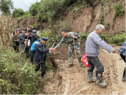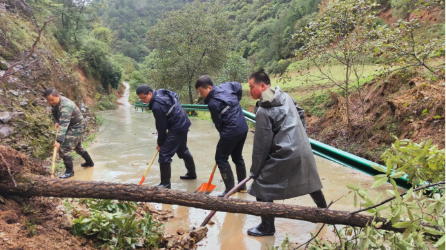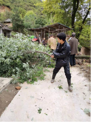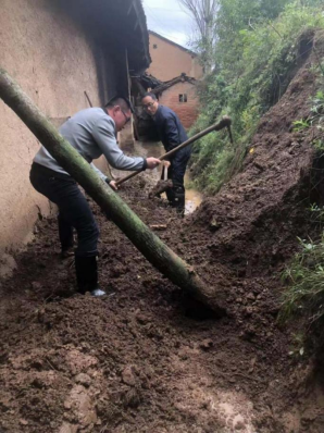 太白县王家堎镇纪委干部清理塌方泥流、树干,确保道路畅通。