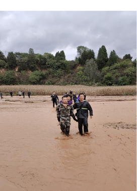 陇县纪检监察干部及时组织转移受灾群众。