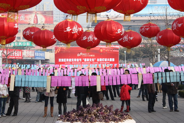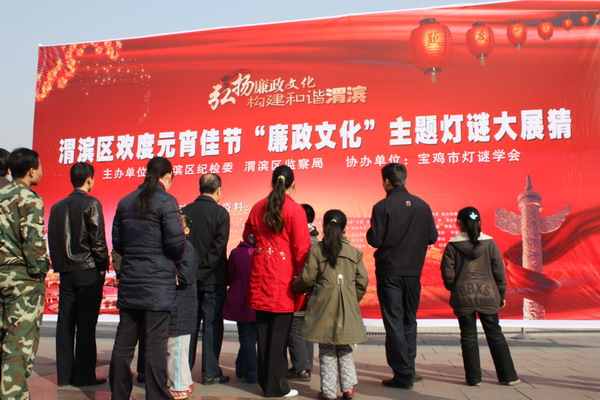 正月十五的宝鸡火车站广场,一条条廉政灯谜吸引了南来北往的游客。由渭滨区纪委监察局与市灯谜学会主办的廉政文化主题灯谜活动成了元宵佳节宝鸡街头的一道亮丽风景。