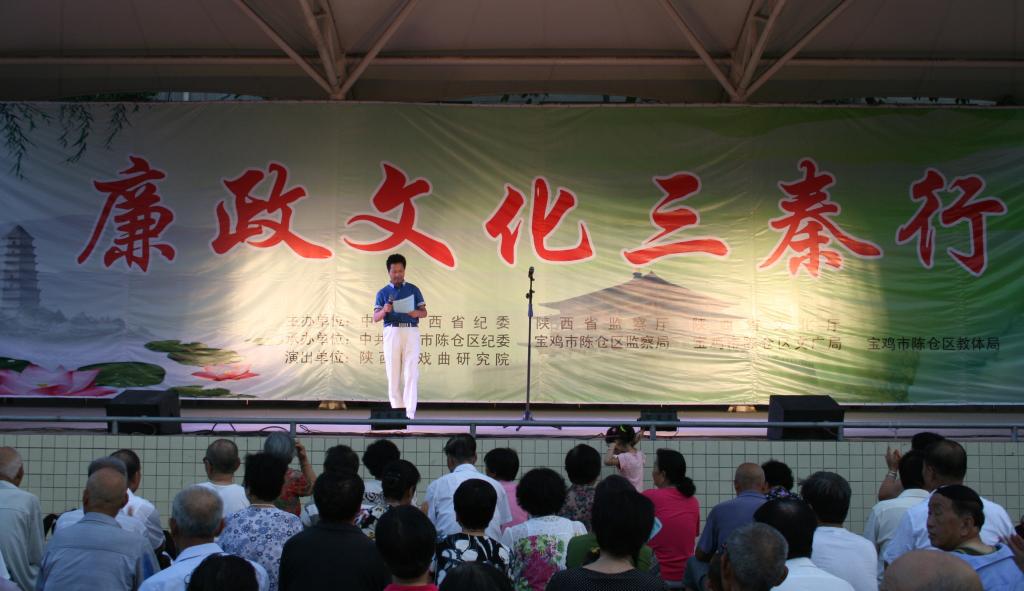 鼓帆西虢乘新风破千里,策鞭陈仓送清凉入万家。7月7日晚,由省纪委、省监察厅和省文化厅共同主办的“廉政文化三秦行”巡演在陈仓区育才园广场隆重演出。区委副书记王万庆做了现场致辞,全区2000多名党员干部群众观看了演出,。