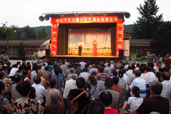 7月8日傍晚,清凉的晚风吹拂渭水两岸,在历史悠久的炎帝祠前,“廉政文化三秦行”文艺演出携着阵阵清风走进宝鸡,为全市人民带来了一场清心醒脑的精神文化盛宴。