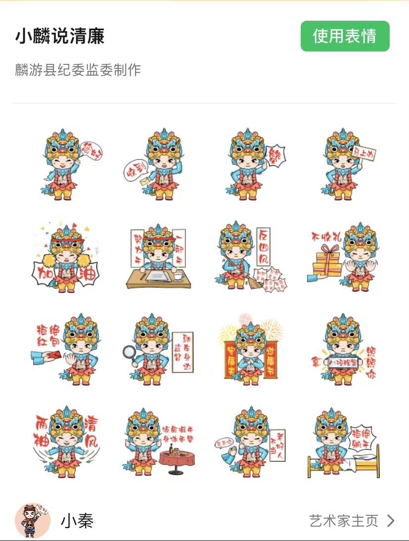 “小麟说清廉”系列表情包是麟游县纪委监委以麒麟为依托,将日常用语和廉洁提醒融入其中,既有“您好”“收到”“赞”“加油”等礼貌性和鼓励性用语,又有“马上办”“努力干,一起干”等落实类词汇,还有“反四风”“拒绝红包”“守廉关、过廉节”“拿八项规定照照你”等廉政提醒短语,涵盖了工作生活各个方面,使清廉麟游以更接地气的形式走进干部群众日常生活和工作中。