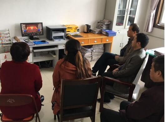 县水利局纪检监察室工作人员在电脑上观看直播