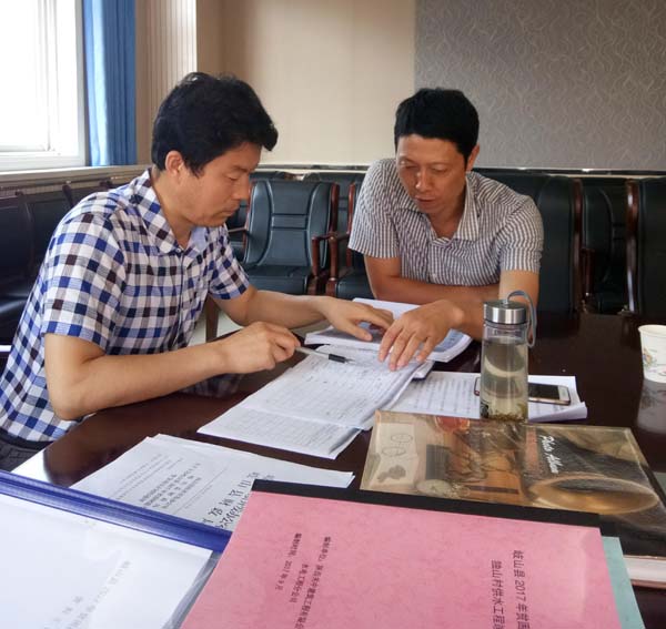 在县水利局,巡察组工作人员认真查看2016年-2018年扶贫领域项目资料