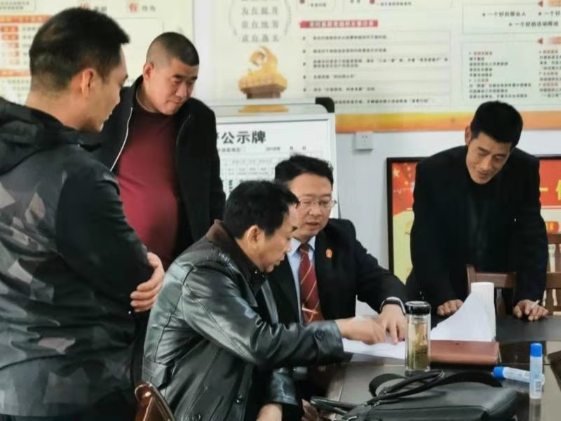 2019年11月6日,在邹润林的奔走协调下,旬阳县人民法院工作人员、吕河镇司法所干部、镇脱贫攻坚驻村工作队、二佛寺村村两委干部及邹润林共同参与了当事人郭金政、冯某的经济纠纷庭前调解会议。