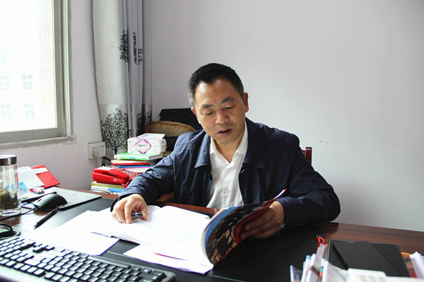 图一:县纪委副书记、县监委副主任祝敏凯利用工作间隙学习《梁家河》