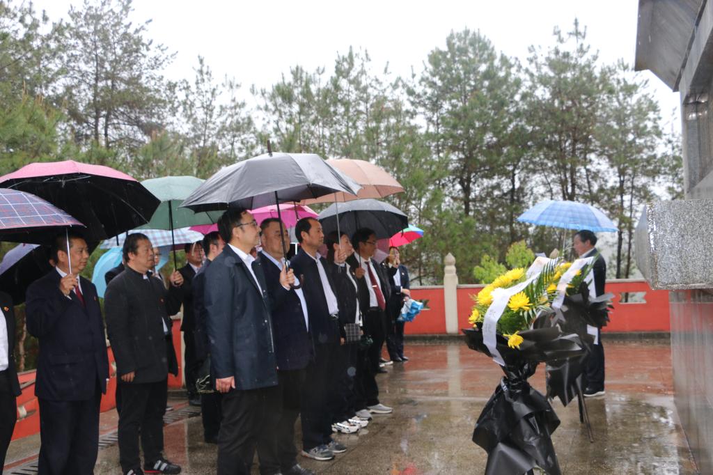 在南沙河革命烈士纪念碑前,县纪委监委领导班子成员向革命烈士敬献花篮,全体行鞠躬礼、默哀。随后,大家依次环绕革命烈士纪念碑,伫立凝视,缅怀先烈。