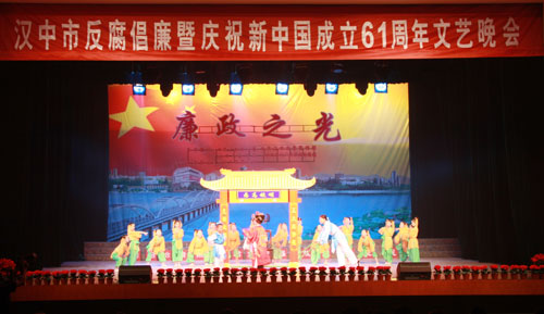9月27日晚,“汉中市反腐倡廉暨庆祝新中国成立61周年文艺晚会”在红星剧院隆重举行。市委书记张会民,市委常委、常务副市长杨达才,市人大常委会副主任胡长芳,副市长王隆庆观看演出。市委常委、纪委书记贺书田致辞。