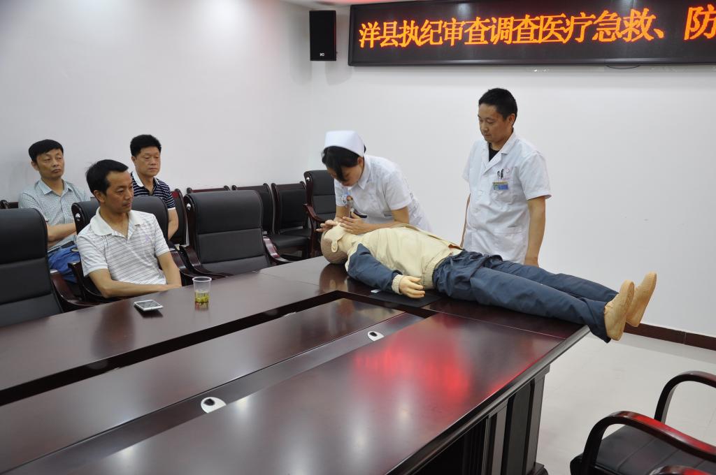 洋县中医院医护人员为大家现场示范“人工呼吸”操作流程