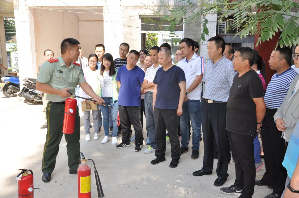 县消防中队战士为大家讲解灭火器正确使用方法