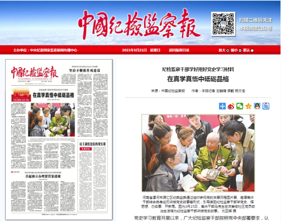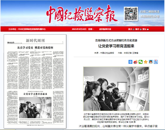 3月15日《中国纪检监察报》5版,以《让党史学习教育活起来》为题报道: