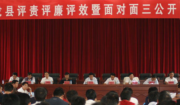 为了进一步加强党风廉政建设责任制,完善和规范“面对面三公开”活动的内容和程序,9月3日下午,黄龙县纪委、监察局组织召开了评责评廉评效暨“面对面三公开”现场观摩会。各乡镇纪委书记、部门主要领导及纪检组长,中省市驻黄单位负责人,石堡镇各站所负责人,工商部门服务对象、人大代表、政协委员、群众代表和纪委监察局所聘的特邀监察员等200余人参加了会议。观摩会由县政府副县长主持,县纪委书记、市监察局副局长等领导出席了会议。