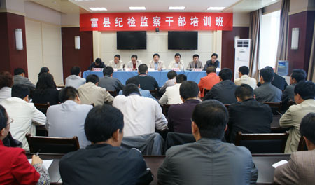 2010年9月27日,富县在县委党校举办纪检监察干部培训班,对该县纪委、监察局全体干部,纪工委全体人员,各乡镇(街道办)纪委书记、副书记、专职委员共90余人进行为期三天的纪检监察业务知识培训。