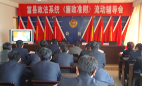 流动辅导期间,先后深入到公安局、检察院、法院、司法局等部门进行辅导宣传,又到张村驿、羊泉、茶坊等乡镇,组织了派出所、法庭、司法所的全体干警进行辅导宣传,在流动辅导会上,观看了《法槌下的疯狂》------原北京市西城区人民法院党组书记、院长贪污受贿案警示教育片。组织学习了该县纪委学习贯彻实施《廉政准则》的通知,随后还就《廉政准则》作了专题辅导,并对参会的政法干警进行了知识测试。
