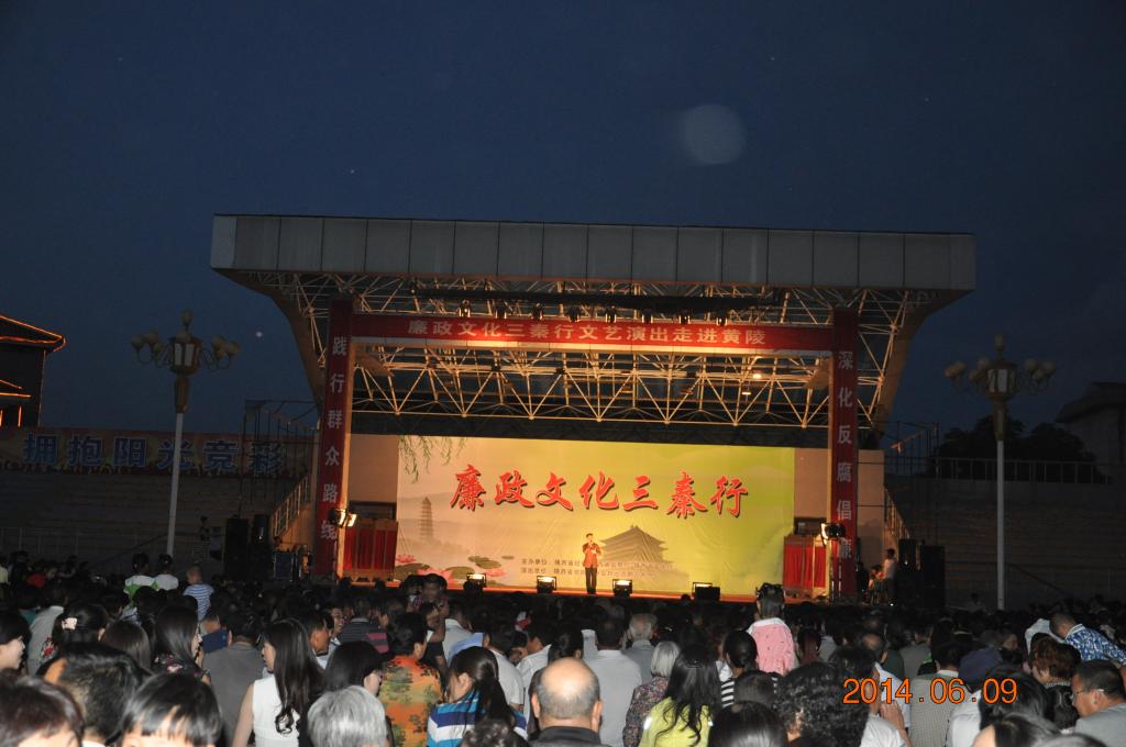 6月9日晚,仲夏时节的黄陵风轻云淡、绿树成荫。在县文体广场,一场由省纪委、监察厅、文化厅主办,黄陵县纪委、监察局、文广局协办,演出单位为省戏剧家协会、刘远话剧艺术中心的“廉政文化三秦行”巡回演出活动正在这里隆重举行。