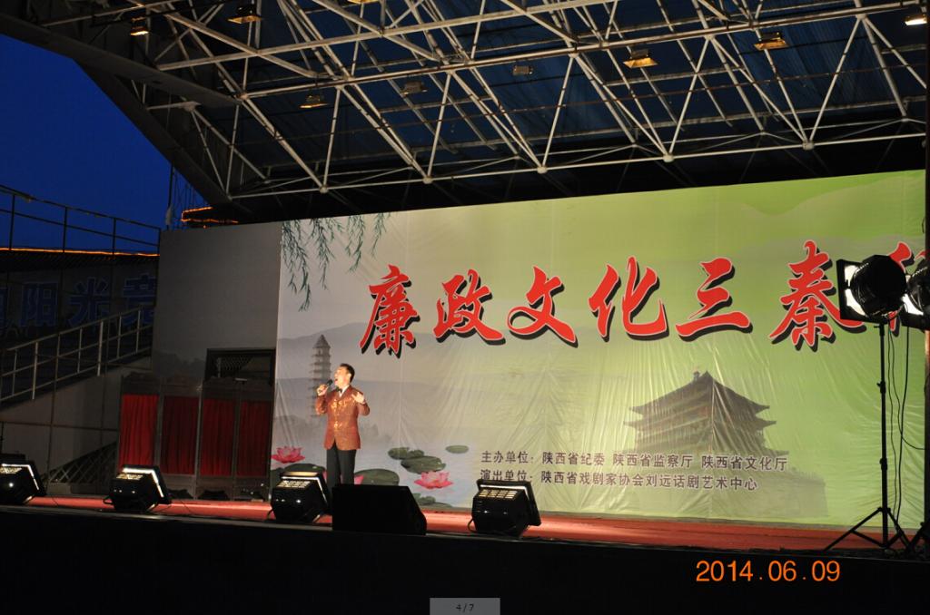 据悉,“廉政文化三秦行”活动是省纪委、监察厅、文化厅为进一步扩大廉政文化的覆盖面和影响力,促进党的群众路线教育实践活动深入开展,组织的一批弘扬时代主旋律、展现反腐倡廉主题,反映党的十八大以来全省反腐倡廉建设和制度创新实际成效的优秀剧(节)目。巡演节目以在全省征集的优秀廉政文艺作品为主,包括歌曲、小品、表演唱、诗朗诵等,并演出一些器乐独奏等,同时穿插演出地市县的1—2个节目,全场演出约90分钟,逐步在全省12个市(区)、107个县(市、区)进行巡演,其中延安片区从6月9日黄陵首场演出开始,至22日在延安市及13个县区逐步巡回演出,共演出14场次。旨在通过巡演,以廉政文艺的形式传递正能量,弘扬正气,促进党风、政风和社会风气的进一步净化。