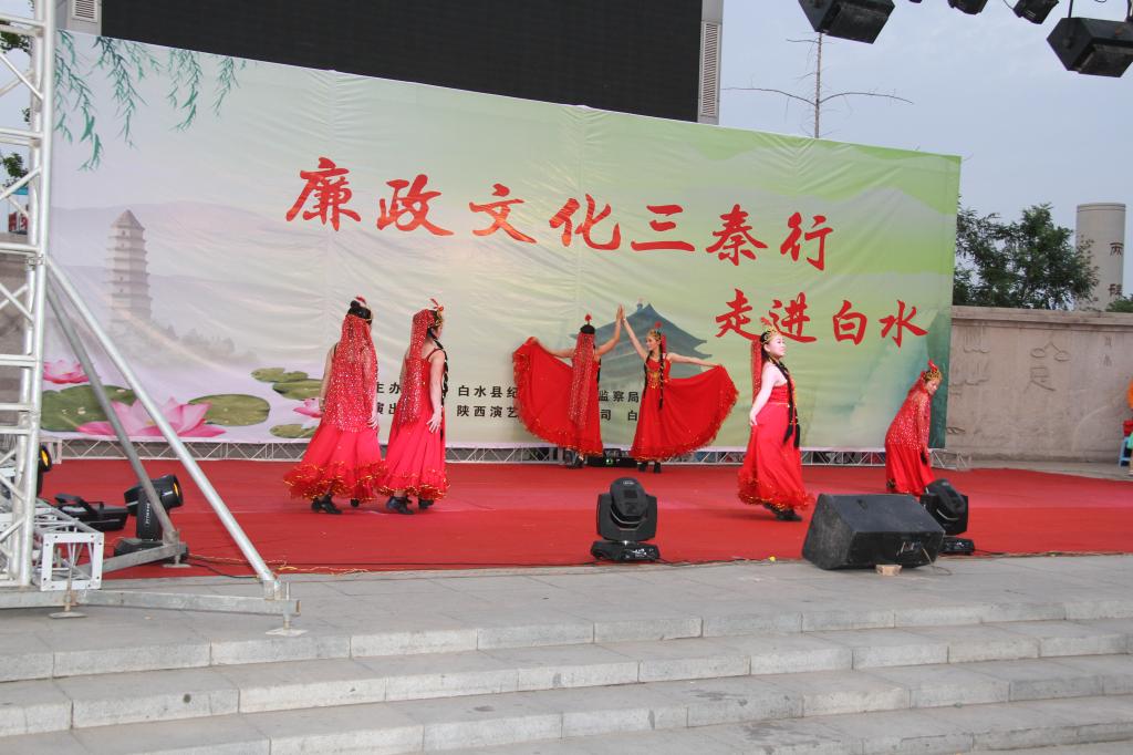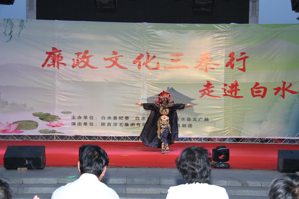 为了进一步扩大廉政文化的覆盖面和影响力,促进党的群众路线教育活动深入开展,2014年6月18日下午7点,由省纪委、省监察厅、省文化厅联合举办的“廉政文化三秦行”文艺演出在我县仓颉广场举行。县委常委、纪委书记郭世英致辞,白水县四大班子及其它在家县级领导、各单位部分党员干部和广大群众2000余人观看了演出。