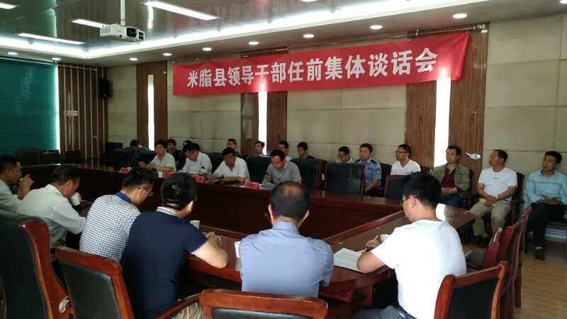 近日,米脂县召开领导干部任前集体谈话会,对46名新任领导干部集体进行任前廉政谈话,县委常委、纪委书记崔飞,县委常委、组织部长纪磊参加会议并讲话。