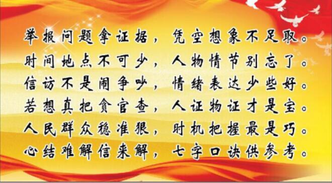 “明片”贴心地被制成名片大小,正面写明纪委监察局受理举报的内容和举报方式,12388有奖举报电话被放置于醒目位置;背面用八十四个字编成群众通俗易懂且喜闻乐见的“七字口诀”,提示群众举报时做到“五要”“五不要”:一要实事求是,不要凭空想象。二要内容具体,不要空泛议论。三要简明扼要,不要洋洋万言。四要能够突出反映问题的违纪特征,不要脱离党纪。五是抓住时机,不要犹豫不决。