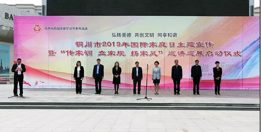 5月15日,铜川市举行以“弘扬美德、共创文明、同享和谐”为主题的国际家庭日主题宣传暨“传家训 立家规 扬家风”巡讲巡展启动仪式。