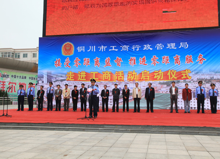 该局局长罗长社介绍,本次走进工商活动是对创先争优“为民服务零距离”活动的深化,希望代表、委员在零距离监督的过程中帮助工商部门查找不足。走进工商活动在铜川新区阳光广场启动,工商人员在广场摆放展板、发放宣传资料、展示假冒伪劣商品,向群众宣传假酒、假洗衣粉等鉴别知识;在现场随后举行的铜川人民广播电台《政风行风热线》走进工商户外访谈节目中,现场解答群众关注的热点、难点问题。