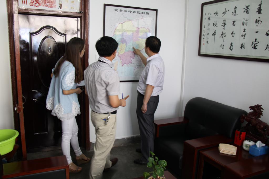 8:30 工作人员在宜君地图前,确定本次信访举报“民情直通车”活动的路线和范围。