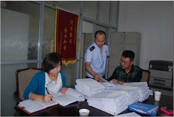 (图为王益区纪委在税务部门倒查发票,电子取证)