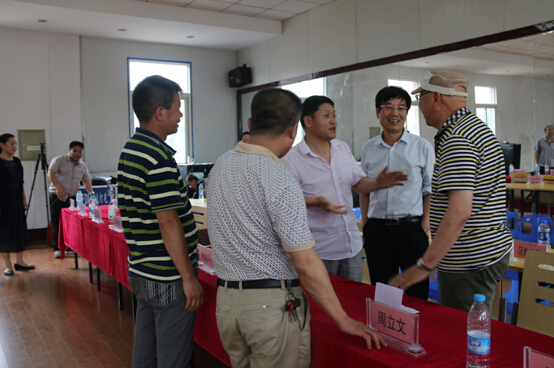 5月31日上午11:17 刘书记认真听取评委老师对王家河办编排的小品《二娃送礼》的点评。