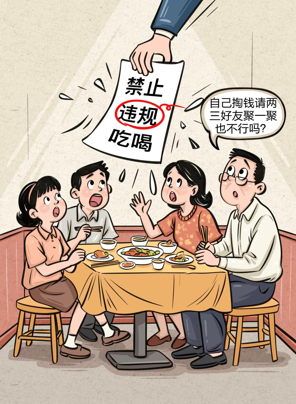 当前,深入贯彻中央八项规定精神学习教育正在开展,全党上下针对违规吃喝问题坚持露头就打、从严查处。然而在整治违规吃喝的过程中,个别地方却“层层加码”,将 “禁止违规吃喝”简单等同于“禁止吃喝”。