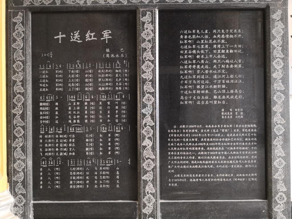 保存在镇巴县博物馆里的《十送红军》歌曲石刻碑文,记载着此歌的来历。 祝叶 摄。