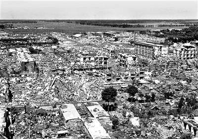 1976年7月28日强烈地震发生后的唐山市一角。 新华社记者 刘东鳌 摄