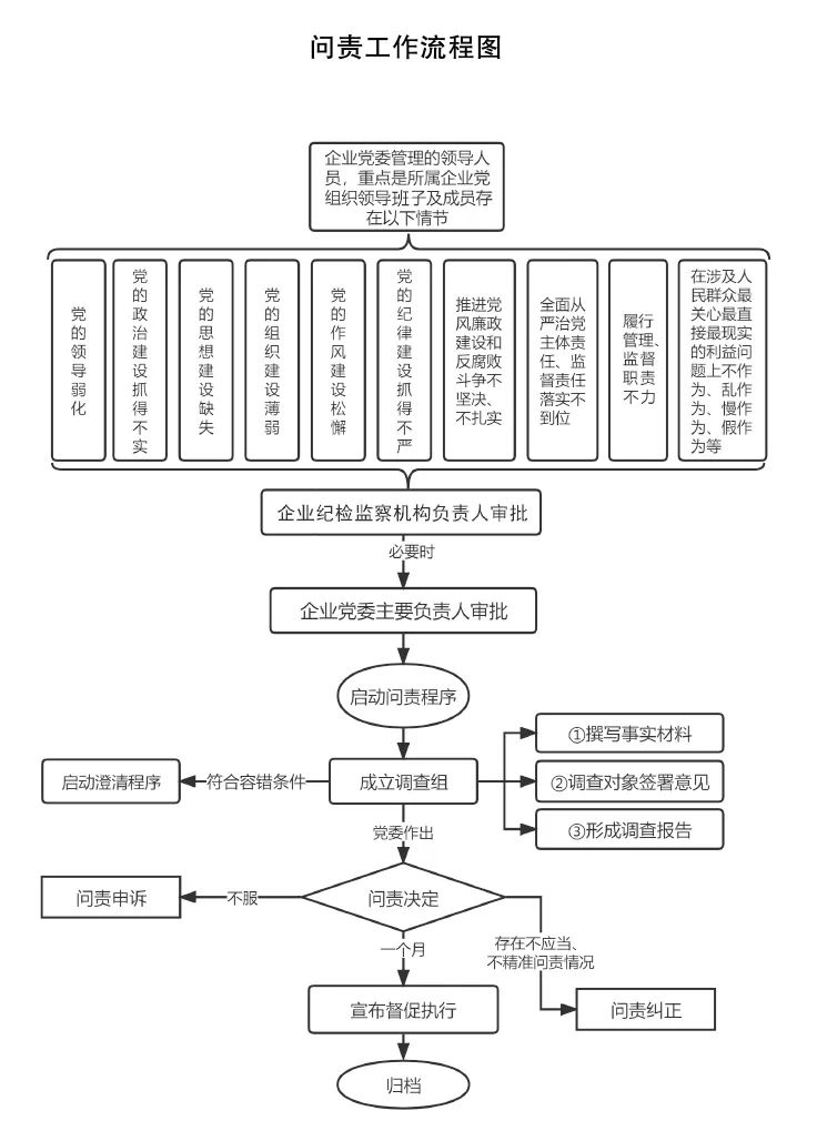 1.企业党委应当履行全面从严治党主体责任,加强对问责工作的领导,企业纪检监察机构应当履行监督专责,协助党委开展问责工作。