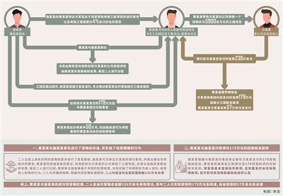 其中,2018年下半年,黄某某经朋友施某某介绍,认识某公司实际控制人方某某,后施某某向黄某某转达了方某某关于请求帮助承接工程项目的请托事项,以及将按工程结算价4%支付好处的意愿。黄某某与施某某商议,决定由黄某某利用职权帮方某某的公司承接项目,由施某某负责接收好处费,事后二人进行分配。此后黄某某帮助方某某的公司承接一个工程结算价5900余万元的工程项目,按约定方某某应支付好处费236万余元。工程实施过程中,施某某根据方某某请托,多次推动黄某某及时审批拨付工程进度款,黄某某提供帮助后,施某某要求方某某按事前约定支付好处费,并在收到方某某支付的179万元后与黄某某商议分配事宜。黄某某提出分得其中50万元,但由施某某代为保管,案发时黄某某尚未实际取得款项。此外,因部分工程款未结清,截至案发方某某尚有57万余元未支付。