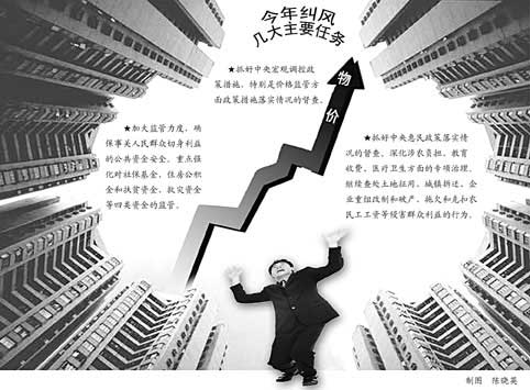 中央纪委驻国家发改委纪检组组长彭森透露,今年将继续执行好临时价格干预措施,加强企业成本调查,适时公布企业生产经营成本,抑制企业超出成本增加幅度的不合理涨价行为。依法查处经营者捏造散布涨价信息、串通涨价、囤积居奇、哄抬价格等违法行为。