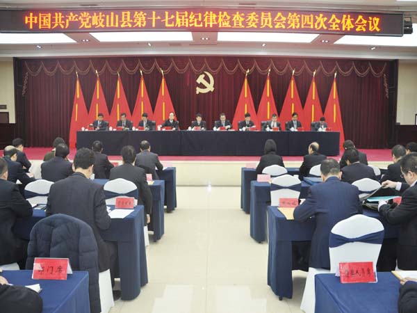 3月2日下午,中国共产党岐山县第十七届纪律检查委员会第四次全体会议召开。县委书记苏少敏出席会议并讲话,县委常委、纪委书记刘涛代表县纪委常委会做了《忠诚履职尽责 勇于担当作为 为新时代岐山追赶超越发展提供坚强保障》的工作报告,会议还表彰了2018年度纪检监察工作先进集体和先进个人。