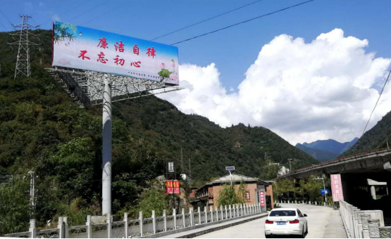 廉政宣传广告,点亮山城新景观——在县城公路主干线、高速路口和县城临河路、迎春路设置廉政公益广告,让广大市民在公园休闲、健身娱乐时接受廉洁文化的熏陶,提升基层群众对党风廉政建设的认可度。
