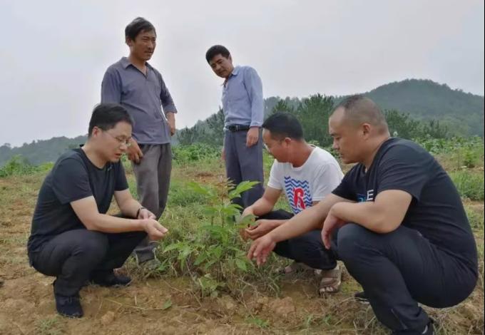县纪委副书记、监委副主任、九里村脱贫攻坚总队长邓立海与群众一起研讨产业发展。
