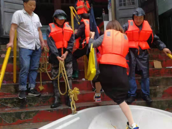 别怕,你走不动,我们来背你!在仁河口镇枫坪村徐家大院滑坡点,纪检监察干部们迅速撤离群众。