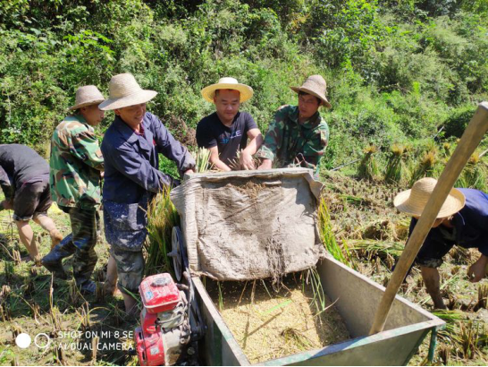 五点:帮扶途中,正遇贫困户收水稻,立即撸起袖子,卷起裤管下田一起劳作。