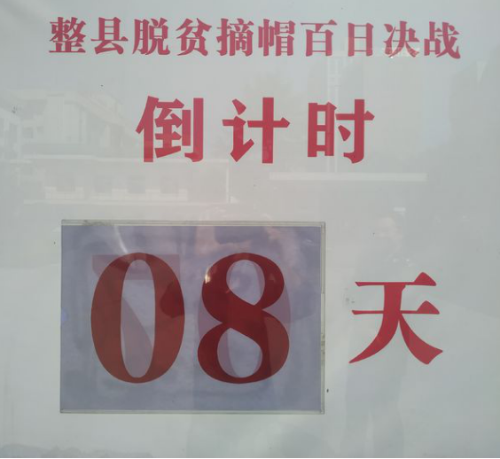 早上六点:整县脱贫摘帽百日决战倒计时牌显示任务节点