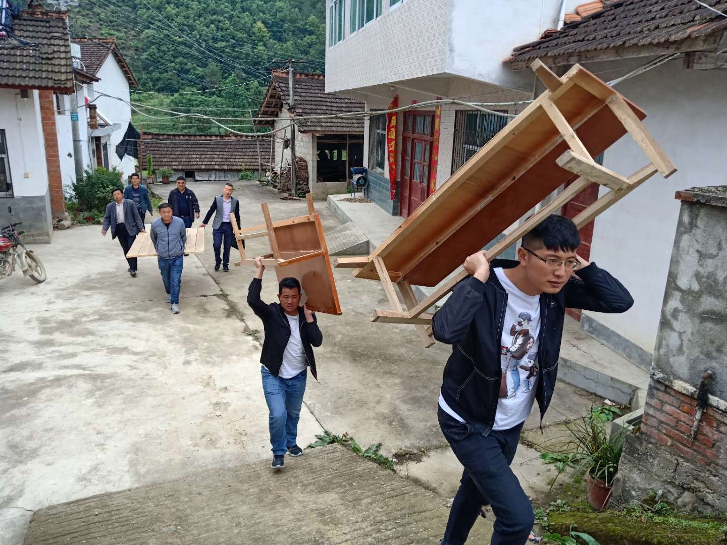 图4:帮扶干部和“四支队伍”共同帮助易地搬迁贫困户乔迁新居。