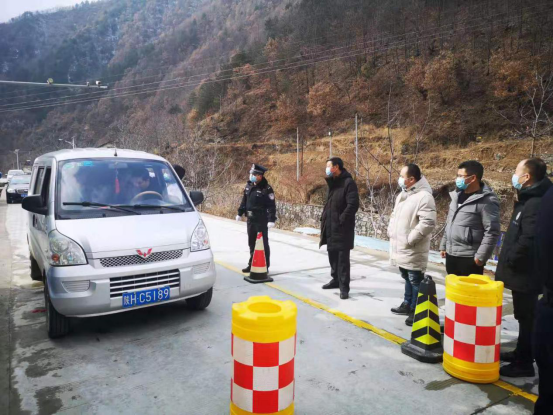1月28日,曹坪镇纪委书记张成有九间房村了解过往车辆检查情况。