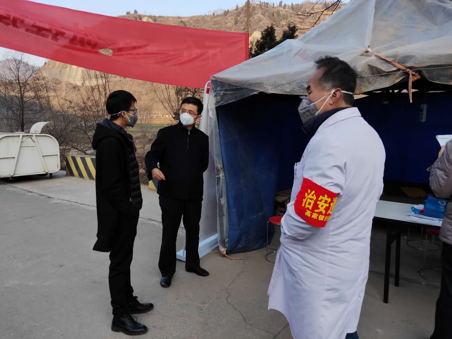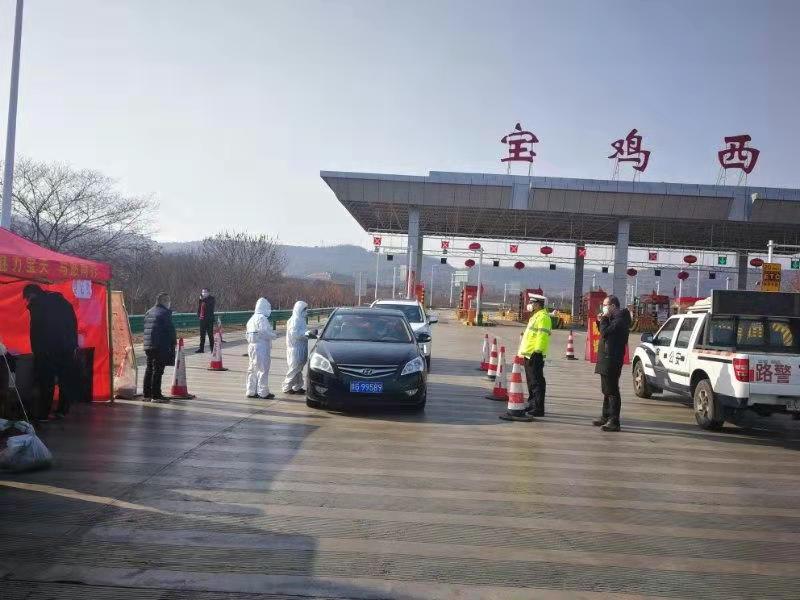 图为督导检查组检查交通检查站车辆和人员检控情况