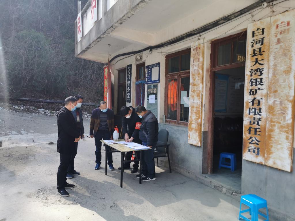 督查组在白河县大湾银矿有限责任公司,对复工后矿区疫情防控措施执行情况进行检查。