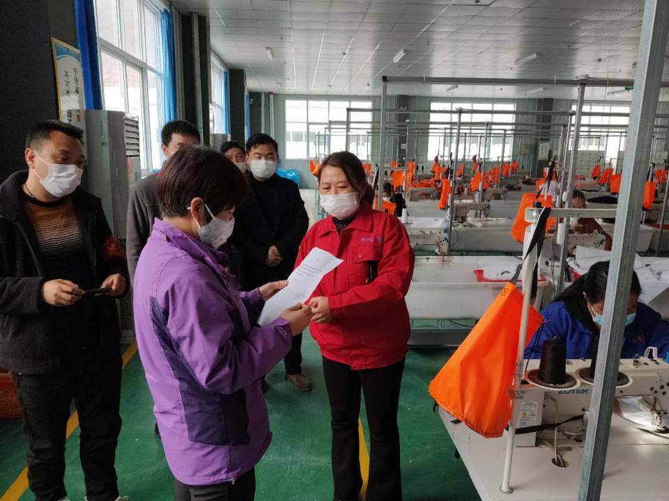 督查组在白河县汇美思工艺品厂生产车间,对企业疫情防控工作落实情况进行检查,督促有关职能部门履行好主体责任,指导企业落细落实疫情防控措施。