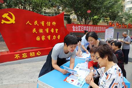 将《规则》宣传活动与文明城市建设、基层党组织建设宣传活动一体推进,体现的是推进国家治理体系和治理能力现代化的豪气。图为区纪委监委与中山东路街道纪工委在瓦场街社区举办宣传活动。