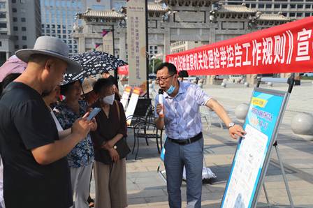《规则》宣传活动面对面答疑解惑,接受群众咨询,体现的是广泛接受群众监督的勇气。图为市纪委监委信访室副主任郭嘉鑫向现场群众讲解检举控告受理范围,积极引导群众正确行使权利,全面提高群众的知晓率和满意度。