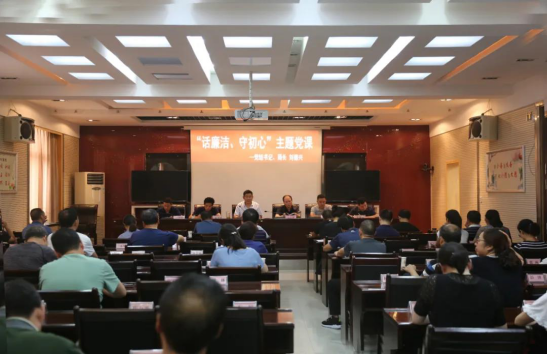 图为县财政局党组书记以“话廉洁、守初心”为主题,结合政府系统廉政工作会和赵正永严重违纪违法案“以案促改”工作讲党课。