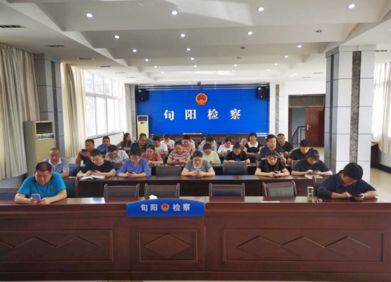 图为旬阳县检察院组织干部职工集中开展“知廉洁、严纪律”党纪法规知识测试。